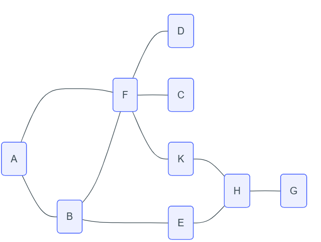 Le résultat du parcours en largeur est : D ; F ; A ; B ; C ; K ; E ; H ; G.