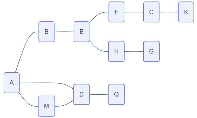 A ; B ; E ; F ; C ; K ; H ; G ; D ; Q ; M.