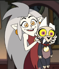 Eda et King sont 2 proches de Luz, Eda étant la première personne qu'elle trouve en arrivant dans les îles bouillantes. Et King étant, l'animal de compagnie de Eda qui se considère comme le roi des démons, sans le savoir qu'il l'est vraiment... Eda maîtrise quasiment tout type de magie car c'était la seule qui ne voulais pas être limitée à en apprendre une seule, ce qui lui donnera le titre de fugitif, elle posède aussi une malédiction qui la transforme en monstre chouette. Et pour les détails de King, il ne se souviens de quasiment rien de son enfance au début de la série mais développe des pouvoirs de titant au fur et à mesure du temps! |